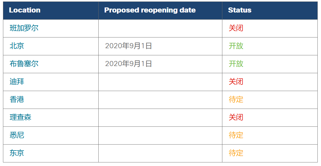目前的考场重新开放计划如下。设有座位限制,可能会更改或更新: