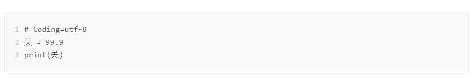 特别地,中文和其他的一些亚洲文字也是可以作为标识符的,有兴趣的同学可以自己测试下面的代码: