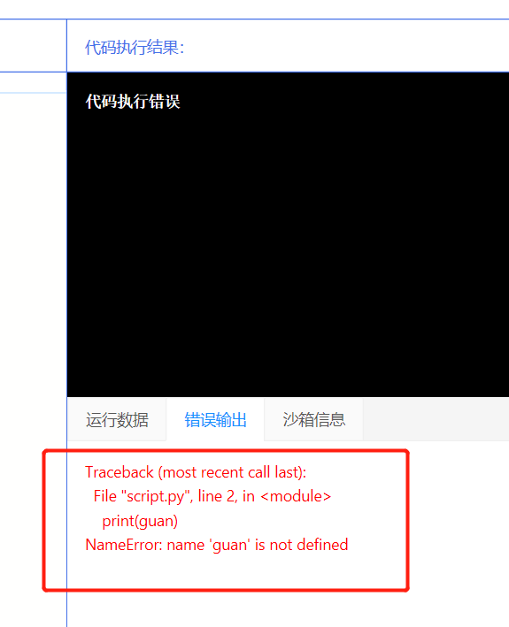 回到刚才报错,提示变量没有被定义,也就是Python也不知道guan是什么,很明显,就是你自己输入错误了,试一下纠正错误,然后重新输入,看看这次是否正常了。